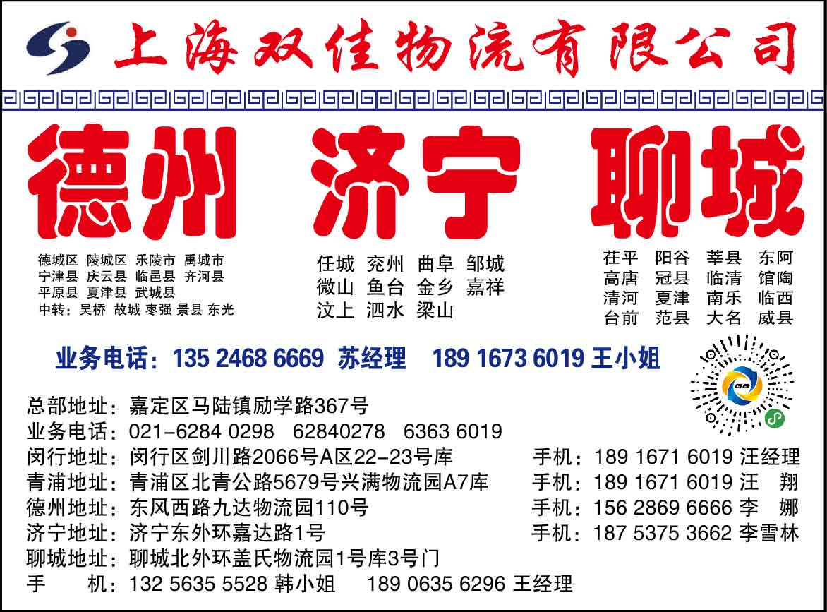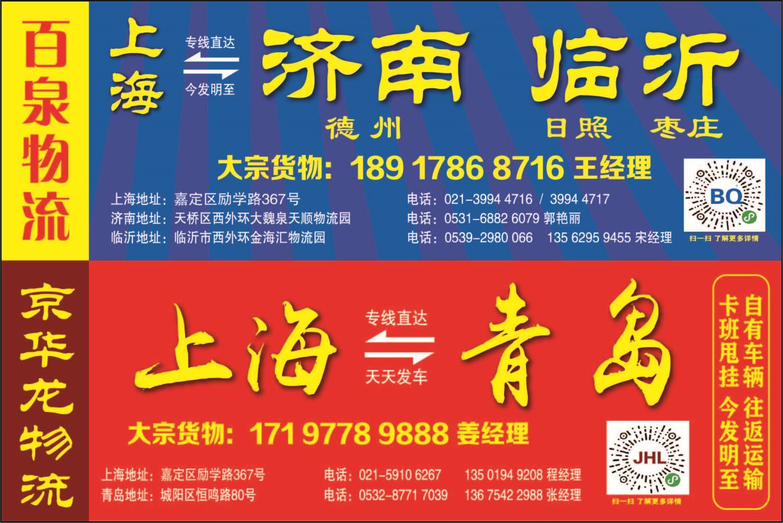 上海至济南 临沂 潍坊 济宁 烟台 青岛 精品专线